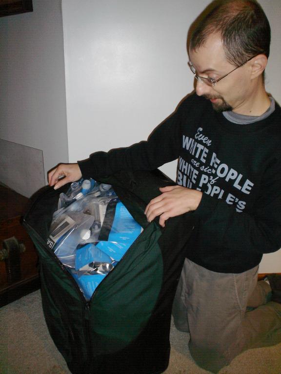I made a new plan: It looked like the campaign might eventually meet its goal, so I preemptively ordered one hundred filters, six days before our last convenient chance to make the hand-off. (We live nowhere near each other, but share a martial arts class.) I chose one hundred because I guessed that I could cram that many into the oversized luggage, and it was probably roughly the most that the campaign would raise funds for. I would cover the cost if the campaign was short (I had planned to buy some anyway, in addition to paying for shipping), and if we got enough to buy more filters than that, I could place a small, supplemental order addressed to Louis' son's house.