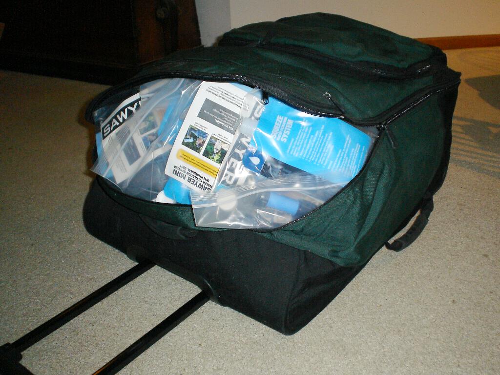 I had no idea how many filters I'd wind up raising money for, nor how many to aim for, nor how big a backpack or suitcase we would need. So I asked for the dimensions of the filter bags, measured the dimensions of my biggest piece of oversized luggage, and divided the latter volume by the former volume. I knew perfectly well that this was absurd, because the bags weren't rectangular solids, but it was all the information I had to work with. And if we wound up with more filters than we knew what to do with, well, that would be a good sort of problem to have. We'd figure something out, I knew.